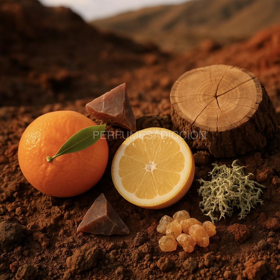 Terre d’Hermès Pure Parfum profundiza la esencia de la línea llevándola hacia un terreno más denso, cálido y refinado. La salida combina la jugosidad de la naranja y la frescura del pomelo con un brillo natural que abre paso al icónico corazón de sílex, esa firma mineral que evoca roca caliente y tierra viva. En la base, las maderas envolventes se fusionan con el musgo de roble y un benjuí suave y resinoso, que aporta calidez y una elegancia casi dorada.