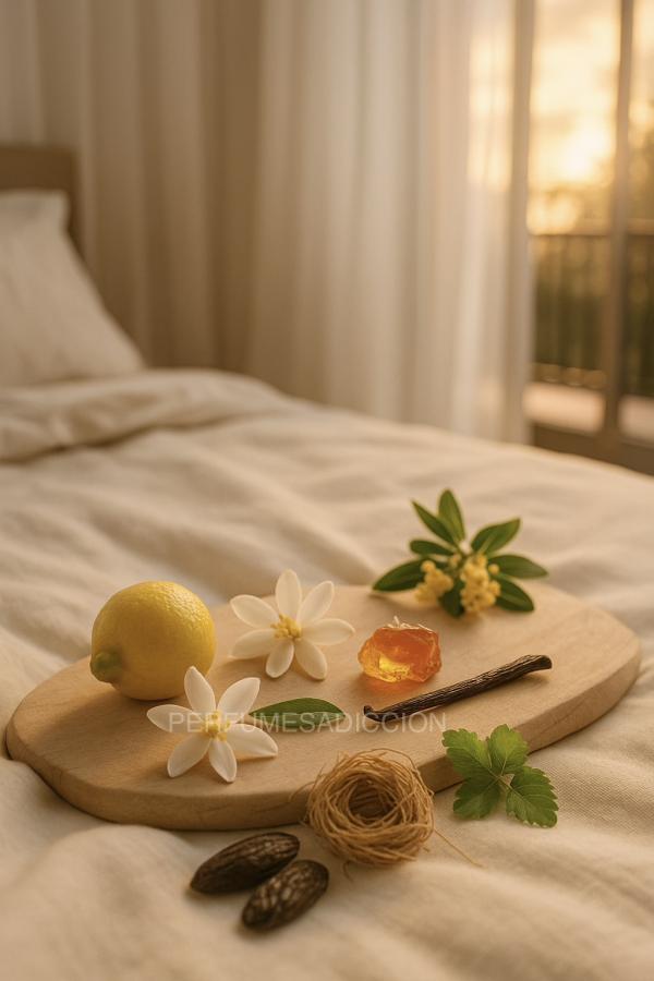 Sensual y luminosa, con un toque misterioso que se funde en la piel. Un aroma elegante y adictivo, tan íntimo como un atardecer dorado sobre sábanas suaves.