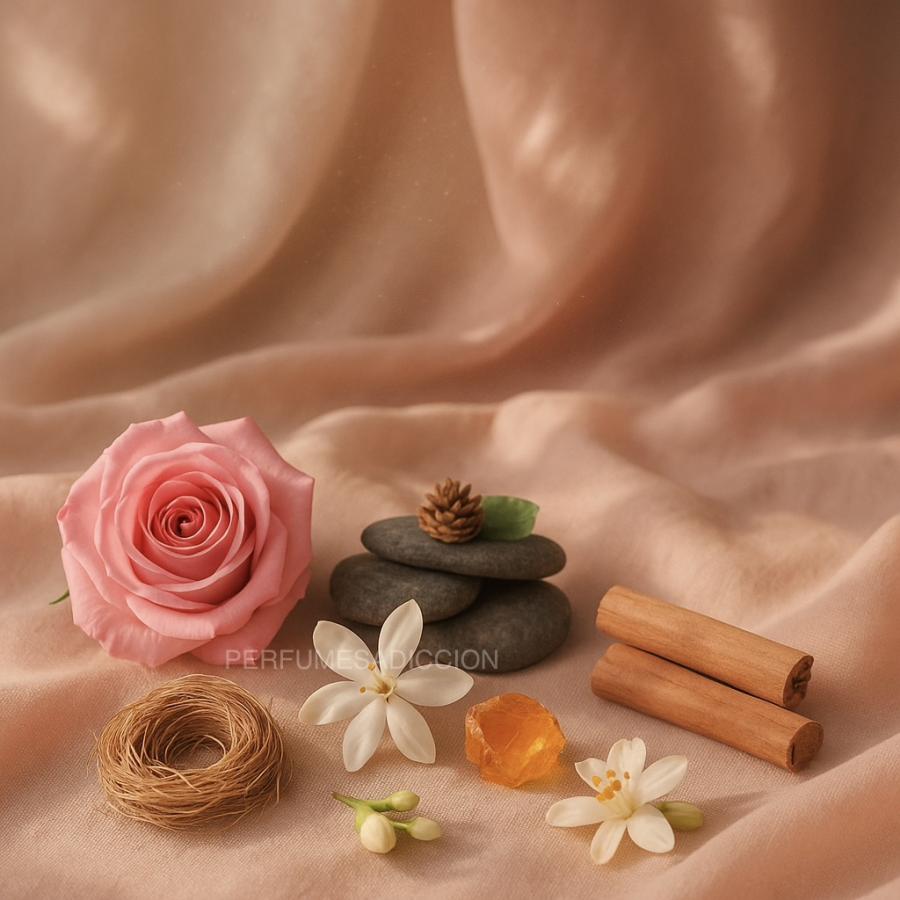 Poudrée envuelve la piel con el encanto sutil de un abrazo empolvado. La rosa adquiere un tono cremoso y luminoso que se funde con flores suaves, revelando un corazón íntimo, limpio y aterciopelado. En su base, la calidez delicada de maderas pulidas aporta profundidad sin perder esa sensación femenina y refinada, como una segunda piel sedosa. Es elegante sin esfuerzo, sensual sin provocación y tan suave que enamora en silencio.