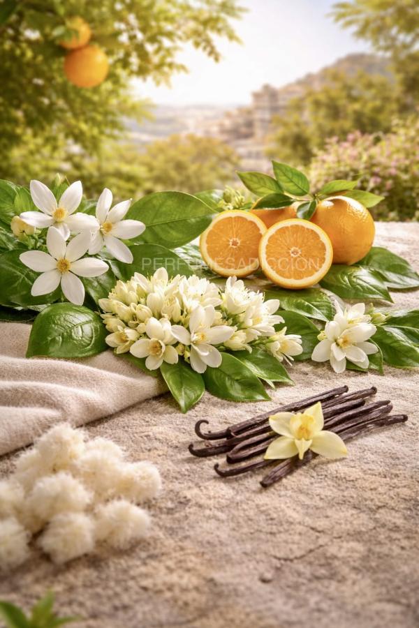 Un bouquet floral blanco y luminoso donde los cítricos frescos se funden con flores cremosas y una base suave de vainilla y almizcle, creando un aroma delicado, moderno y envolvente.