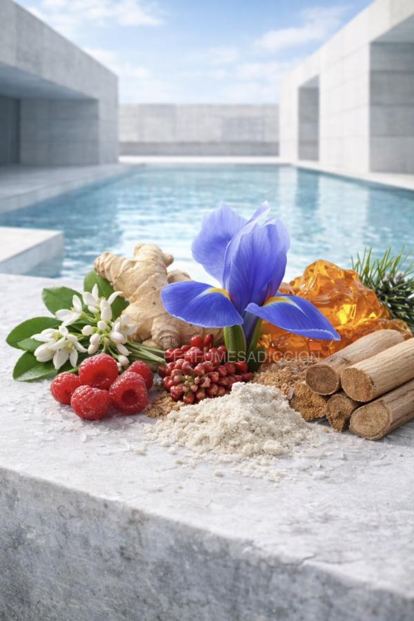 En el corazón aparece el iris, protagonista absoluto. Es cremoso, ligeramente atalcado, pero aquí se siente más ligero y aireado que en la versión original. El ámbar aporta una calidez sutil que equilibra la frescura sin hacerlo pesado.