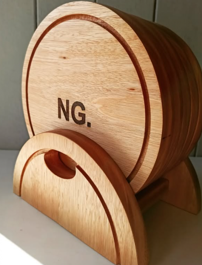 Agrega un toque elegante y funcional a tu hogar o negocio con nuestros sets de tablas redondas personalizadas, fabricadas en madera de eucaliptus premium. Cada set incluye tablas redondas con ranurado para jugos, ideal para servir, cortar y mantener tu espacio limpio. Además, incluye un soporte adicional que ayuda a organizar las tablas de manera práctica y estilizada.
