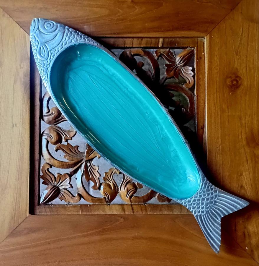 Transforma cualquier espacio con este set de 3 centros de mesa elaborados en aluminio. Su elegante diseño de pez aporta un toque contemporáneo que combina perfectamente con diversas decoraciones.