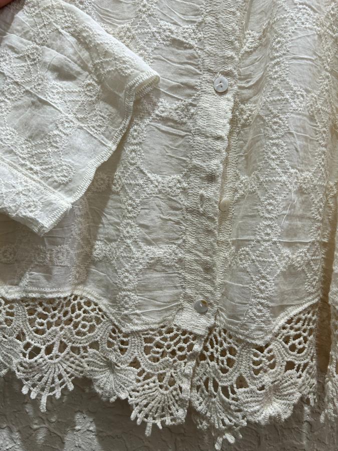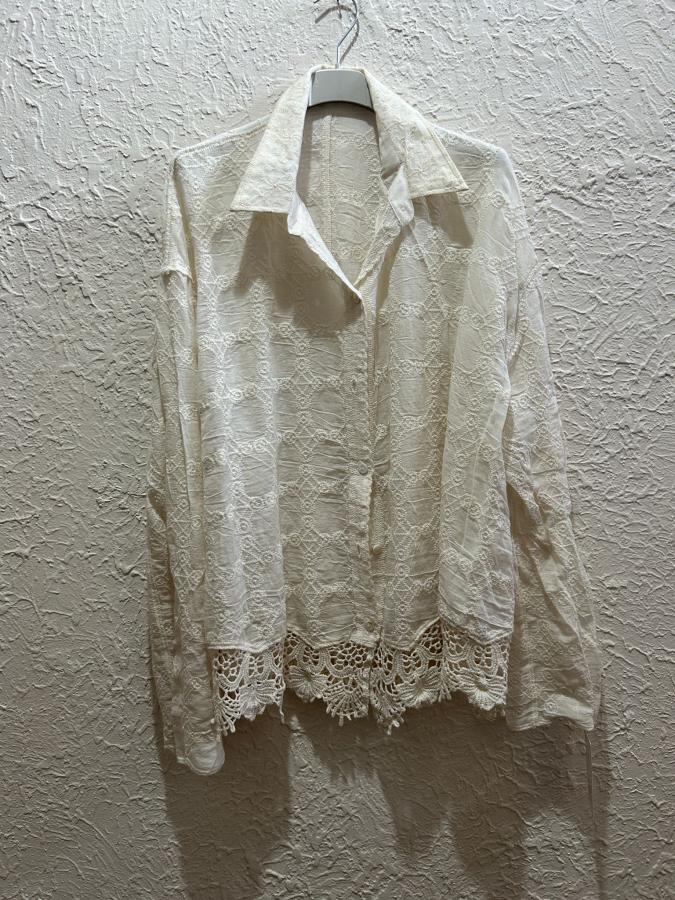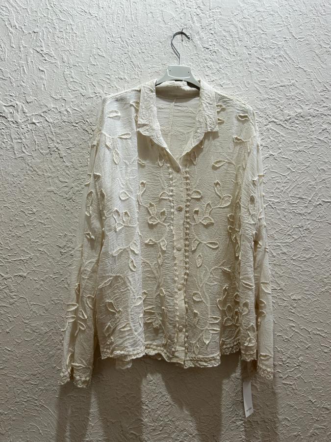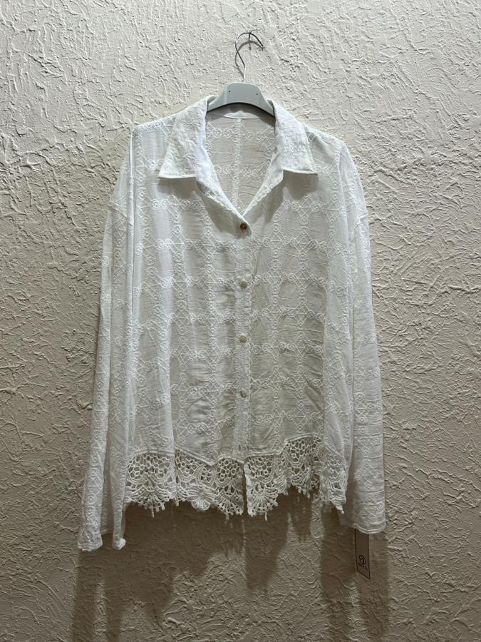 Camisa manga larga con detalles en broderie y bordada.