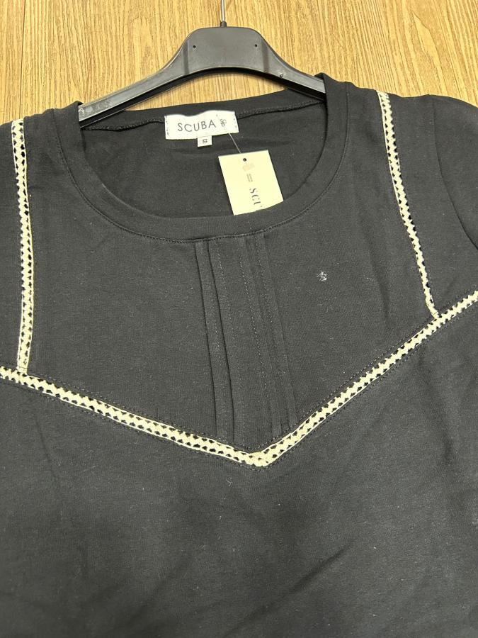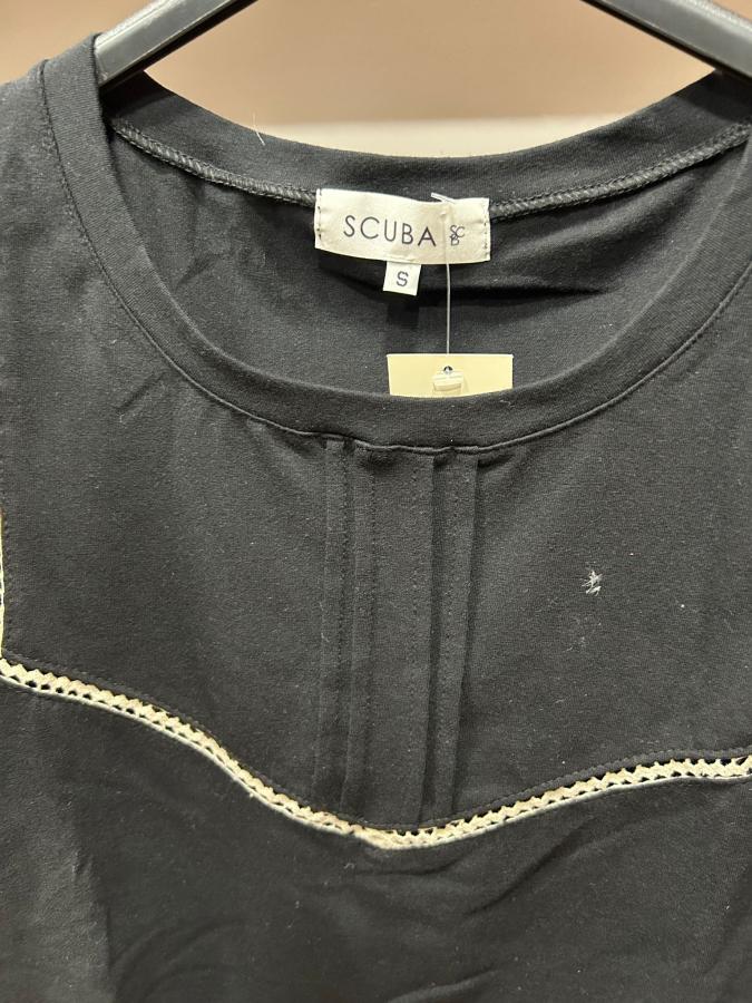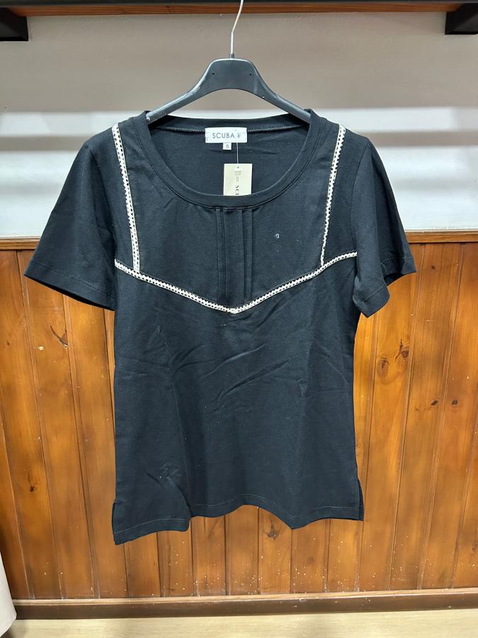 Remera con escote redondo, detalles en broderie.