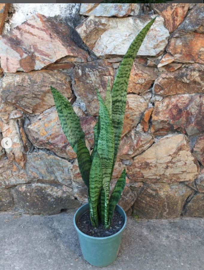 La Sansevieria trifasciata, o lengua de suegra, es una planta perenne resistente de origen africano conocida por sus hojas erectas, rígidas y en forma de espada, que presentan un patrón de bandas verdes oscuras y verde grisáceas. Es una planta de bajo mantenimiento, tolera la sequía y es muy utilizada como ornamental de interior debido a que no requiere luz solar directa y purifica el aire