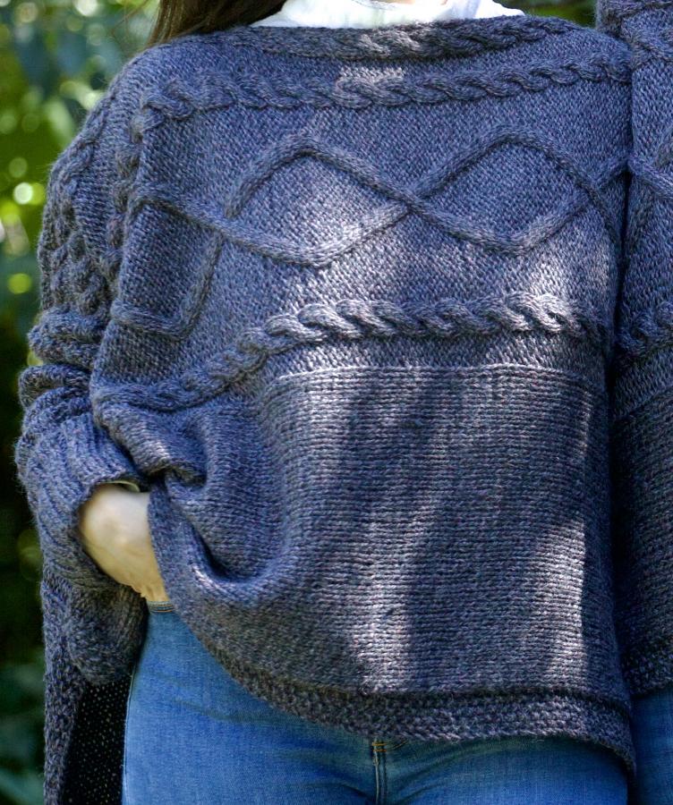 Lo hemos hecho en gris plomo sólido y en hilado de tweed gris/morado.