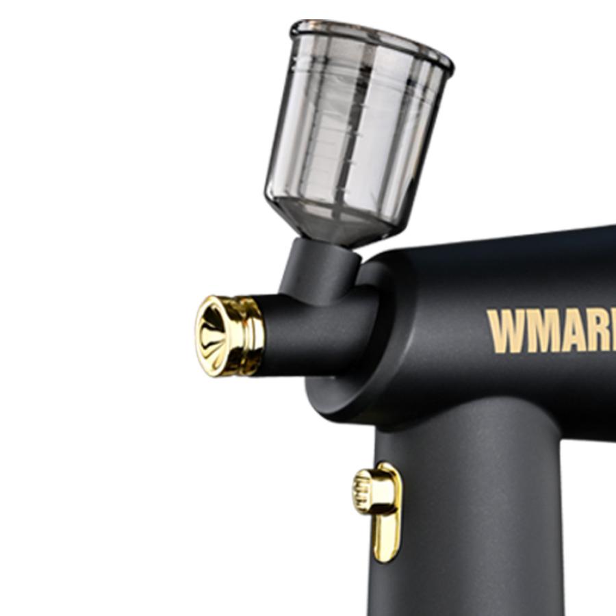 Aerógrafo inalámbrico que tiene una batería de iones de litio de 1600 mAh con un tiempo de carga de 4 horas y 60 minutos. El diseño inalámbrico asegura comodidad y practicidad.