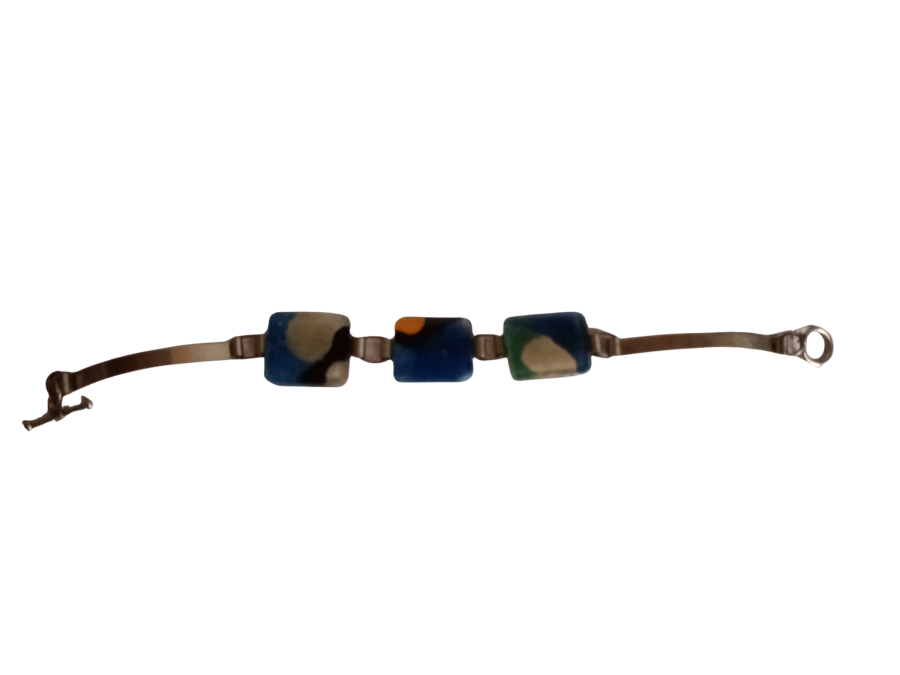 Piezas en vitrofusión de 1cm x 1 cm con motivos diferentes. Engarce y ajuste en alpaca.