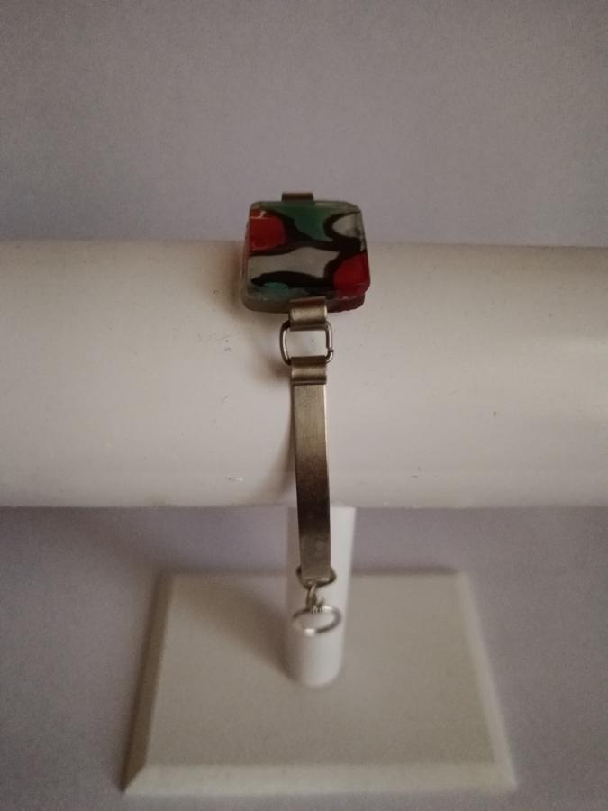 Pieza en vitrofusión de 1cm x 1 cm con motivos diferentes. Engarce y ajuste en alpaca.