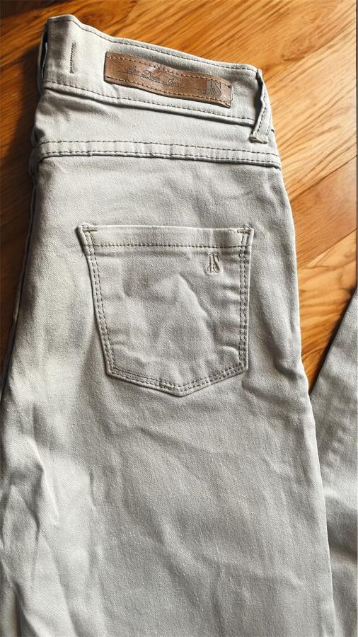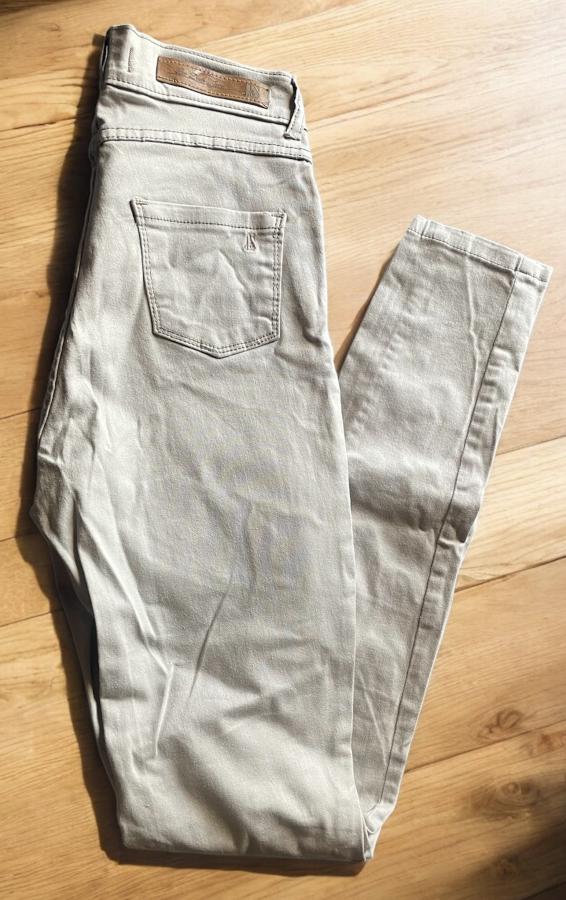 Jean color beige marca J&S, modelo chupín. De corte ajustado, cómodo y versátil, ideal para looks modernos y combinables. Prenda confeccionada en tela jean con lycra, en muy buen estado y con poco uso, perfecta para usar en cualquier temporada.