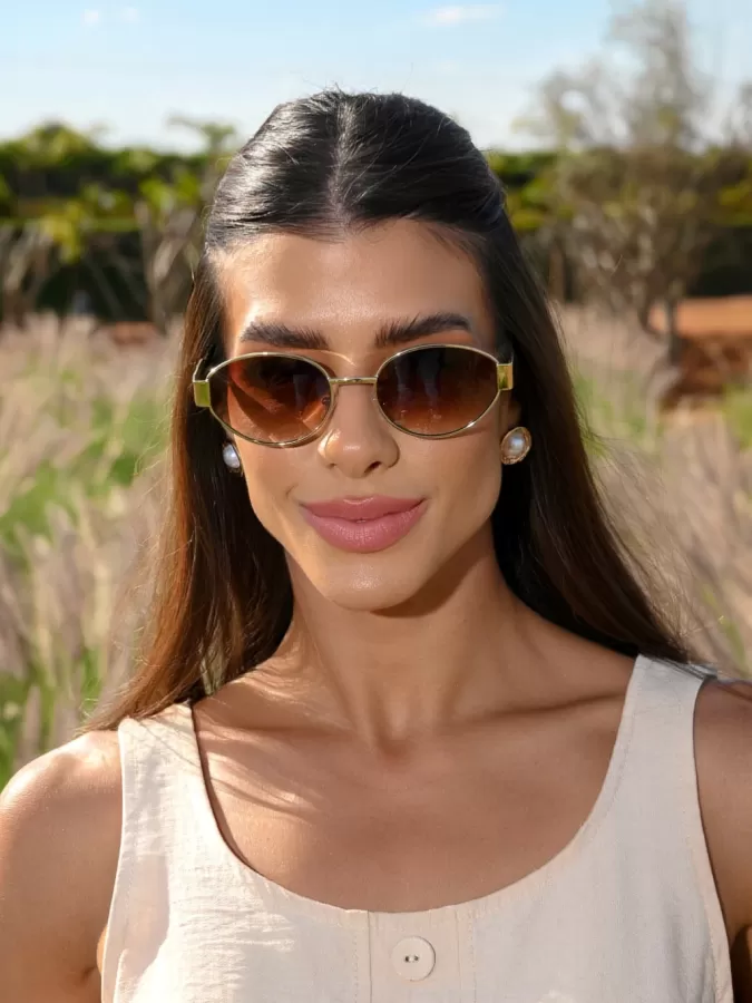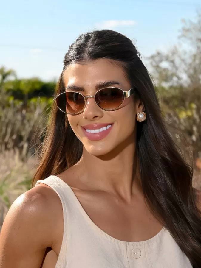 Los lentes de sol Naxos con lentes marrones degradadas y patillas doradas y negras son simplemente preciosas. Esta sofisticada combinación es perfecta: el degradado marrón de las lentes crea un efecto suave y elegante, mientras que las patillas doradas y negras añaden un irresistible toque de lujo. Con forma ovalada y montura metálica, crean ese look sofisticado que toda mujer merece. Con 14 cm de ancho, se adaptan a la perfección a rostros ovalados, redondos y cuadrados, creando un look refinado y versátil. La protección UV400 protege tus ojos, mientras que las lentes resistentes a los arañazos mantienen las gafas impecables.