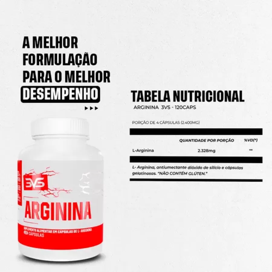Arginine 3VS es un suplemento compuesto por los aminoácidos arginina, ideal para los atletas que buscan aumentar la fuerza y la energía.