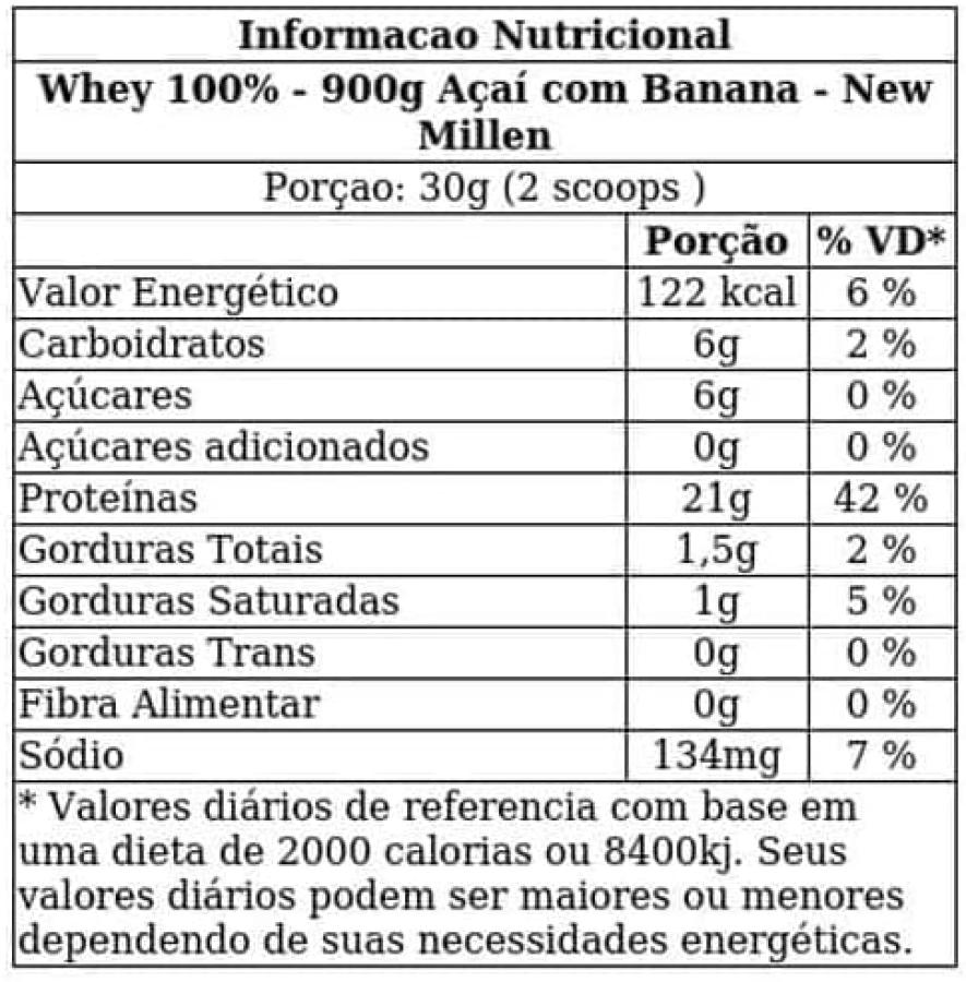 Whey 100% Pura New Millen 900 grs POTE sabor Banana con Acaí