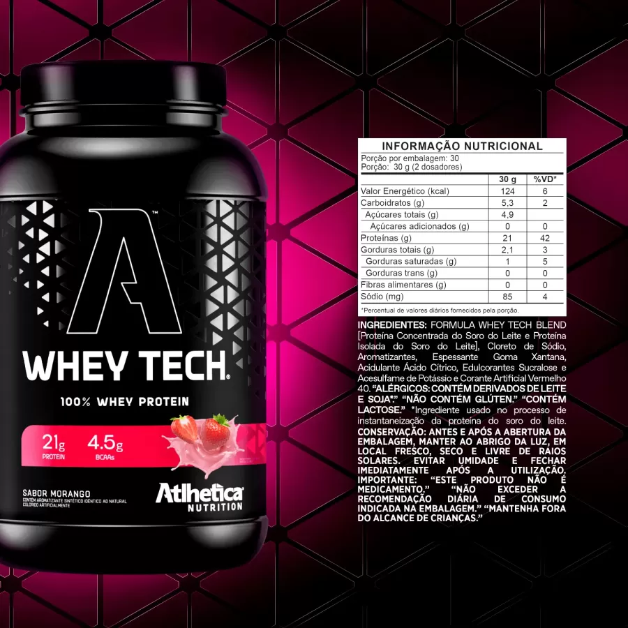 Whey Tech 3W Premium Atlhetica Nutrition 900g Pote Frutilla