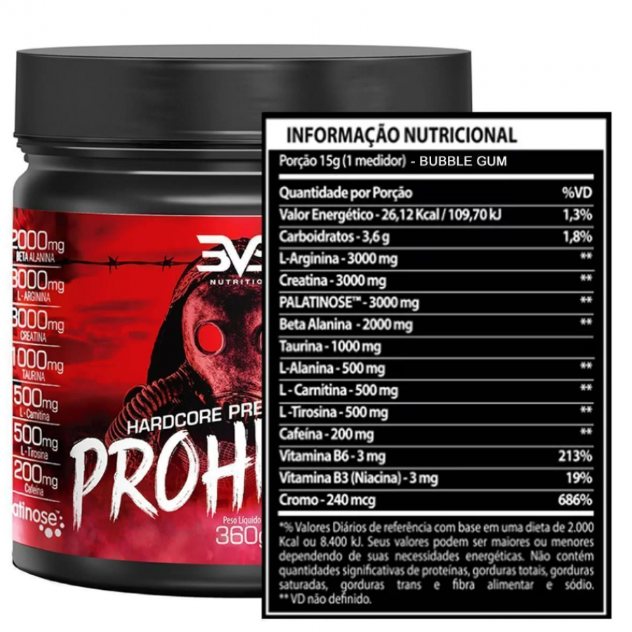 Prohibido 3VS Nutrition es el fin de la falta de energía y la falta de motivación para el entrenamiento. Con ella tendrás más energía para afrontar el entrenamiento, con toda intensidad, al principio, a la mitad y al final, gracias a la tecnología que va liberando energía de forma gradual. Prohibido también liberará la bestia que llevas dentro, lo que permitirá una mayor explosión de fuerza en tus músculos y una mayor vasodilatación, haciendo que aguantes más cargas. La quema de grasa se acentúa al facilitar su transformación en energía, que se convertirá en combustible para impulsar aún más tus entrenamientos.