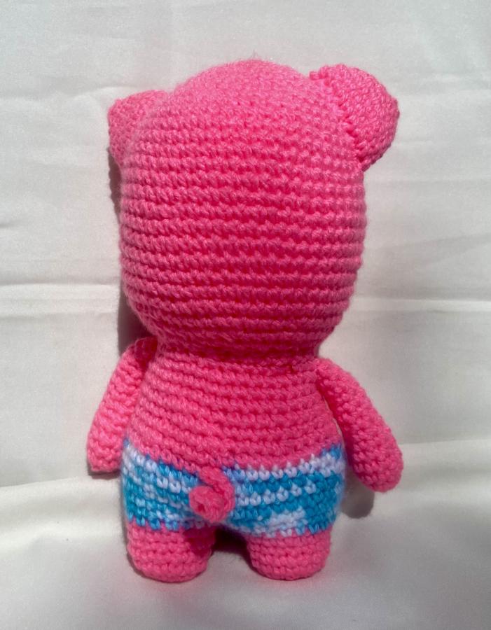 Tejida a mano, hermosa cerdita en el rosa más luminoso. Lana hipoalergénica