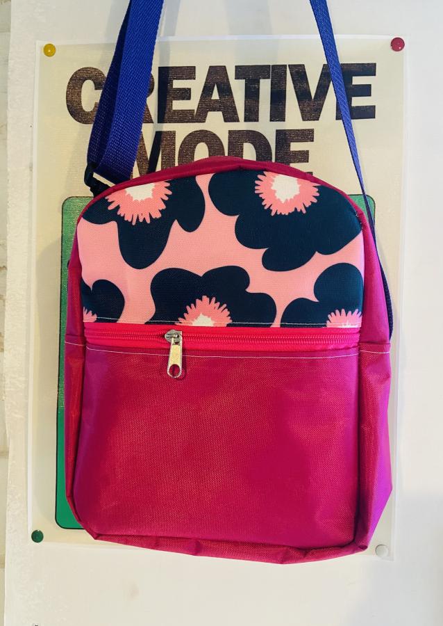 Bandolera amplia con bolsillo en el frente, interior y espacio amplio de guardado. Correa regulable.