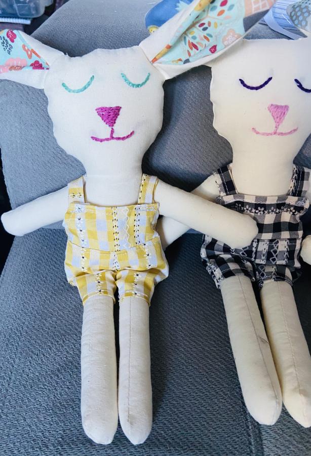 Muñeco de tela, confeccionado en lienzo, carita bordada y enterito amarillo. Hermoso conejo 🐇 ideal para los más chiquitos/as.