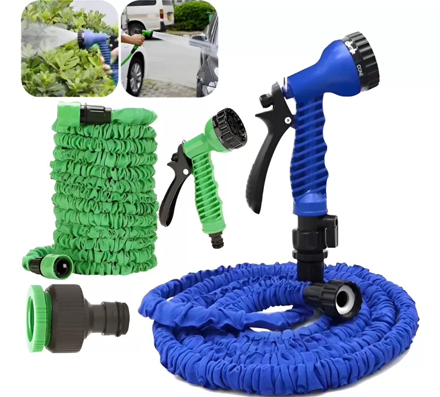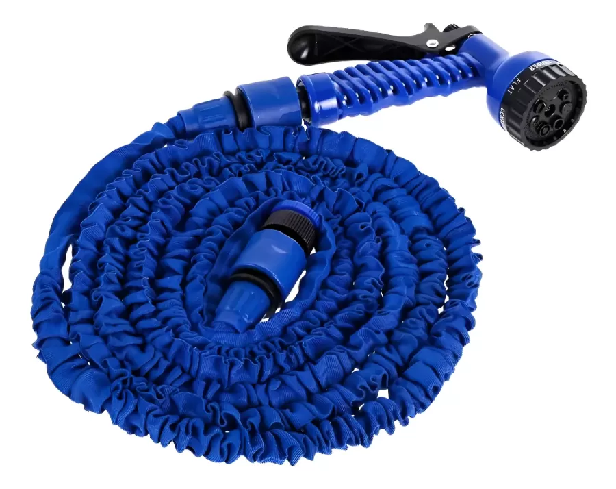 La Manguera Extensible de 30 metros se expande automáticamente al abrir la canilla de agua por efecto de la presión, alcanzando hasta el triple de su tamaño inicial. Al cerrar la canilla, se contrae rápidamente a su dimensión original, facilitando su almacenamiento por su diseño compacto.