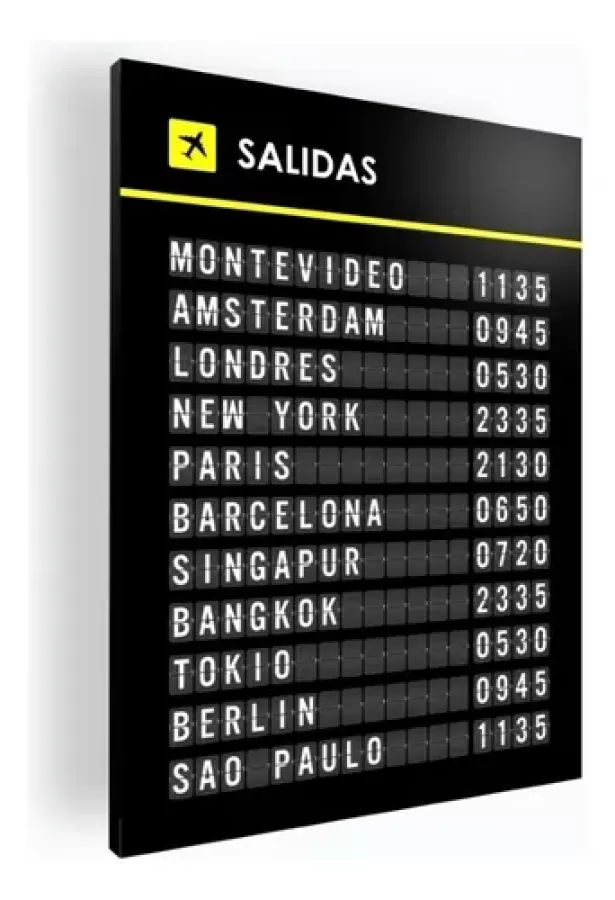 Renueva tu espacio con este cuadro decorativo de estilo moderno, ideal para cualquier habitación de tu hogar, como el living, comedor o dormitorio. Este mural representa las salidas de un aeropuerto, aportando un toque urbano y contemporáneo a tu decoración.