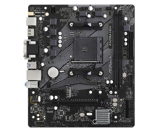 Formato: Micro ATXCompatibilidad: Ryzen 3000, 4000, 5000 (Comun y G-Series)Socket AMD AM4Chipset: AMD A520Memoria: DDR4 (Dual channel) hasta 64GBAlmacenamiento: 1 x Ultra M.2 y 4 x SATA de (6 Gb/s)Graficos: Gráficos AMD Radeon Vega (DirectX 12, Pixel Shader 5.0)Audio: Realtek High Definition 7.1 integradoPCIe 3.0 X16Conector de alimentacion: ATX de 24 pinesConectores:1 x HDMI1 x DVI-D1 x D-Sub1 x PS/2 Teclado/Ratón2 x puertos USB 2.0 (Soporta Protección ESD)4 x puertos USB 3.2 Gen1 (Soporta Protección ESD)1 x LAN RJ-45 con LED (ACT/LINK LED y SPEED LED)Conectores HD Audio: entrada de línea / Altavoz Delantero / Micrófono