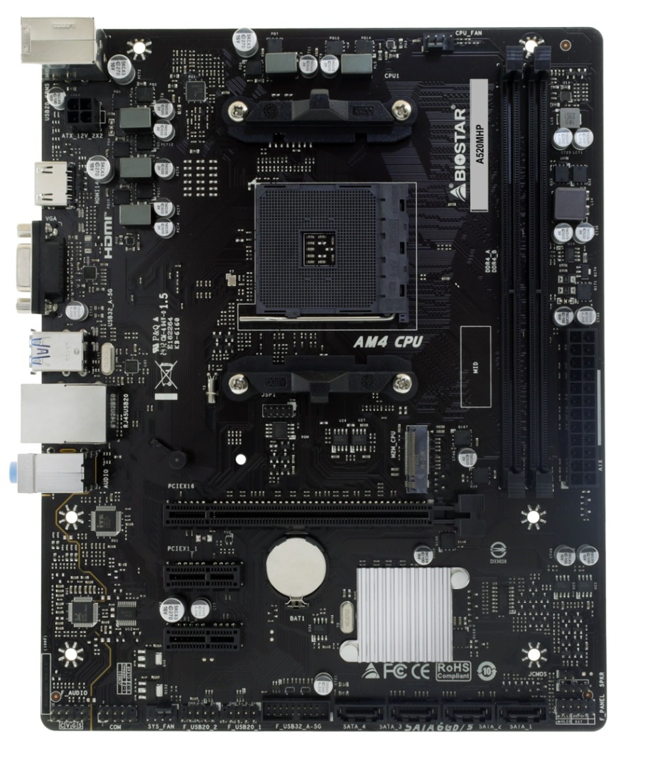 Formato: Micro ATXCompatibilidad: AMD Ryzen 5000/5000G/4000G/3000/3000GSocket: AM4Chipset: AMD A520Memoria: DDR4 (Dual channel) 4 Slots (soporta hasta 64GB)Almacenamiento: 1 x M.2 y 4 x SATA III (6 Gb/s)Graficos: Video integrado (soporta DX12 y HDCP)Audio: 7.1 Channels, High Definition integradoPCIe 3.0 X 16 - 3.0 X 1Conector de alimentacion: 1 x 4 pines / 1 x 24 pinesConectores: 1 x HDMI 1 x VGA1 x PS2 (teclado/mouse)2 x USB 3.2 (Gen1) 4 x USB 2.03 x conectores de audio 3.5mm