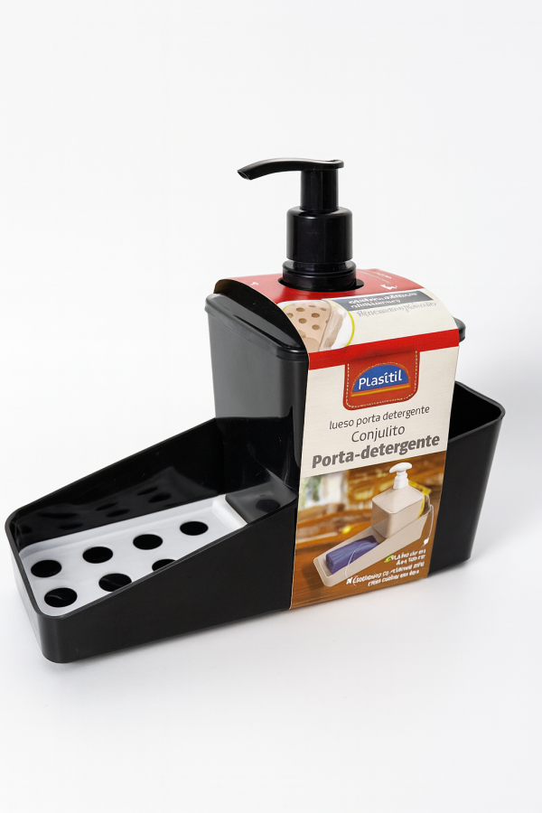 Porta detergente con dispensador y bandeja para esponja