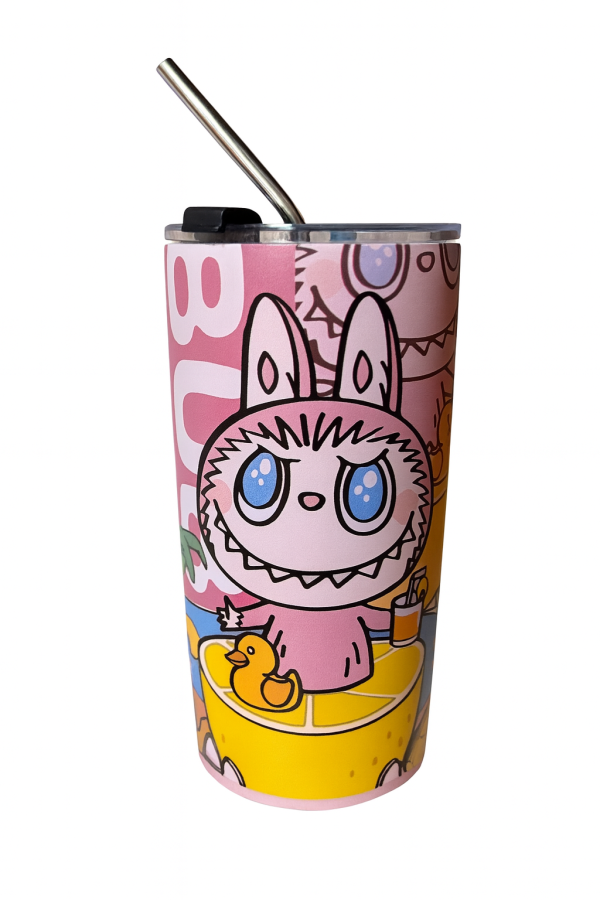 Vaso térmico con diseño exclusivo de Labubu, ideal para bebidas frías o calientes. Fabricado en acero inoxidable con tapa y sorbito metálico reutilizable. Colorido, divertido y resistente. Varios modelos