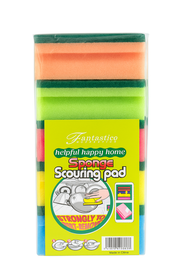 Set de 5 esponjas de colores con doble capa (fibra verde y esponja suave), ideales para limpiar ollas, platos y superficies. Resistentes y duraderas, perfectas para uso diario en cocina y hogar.