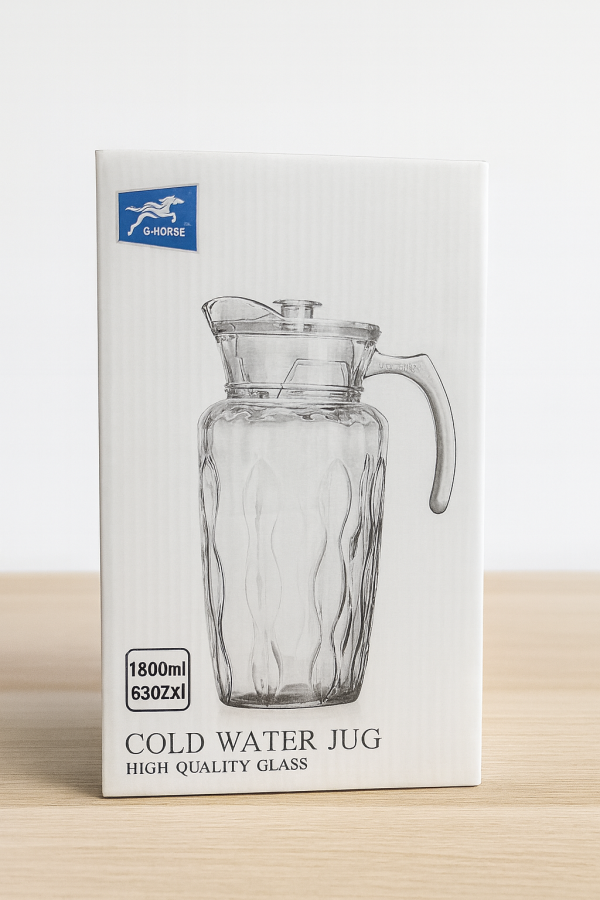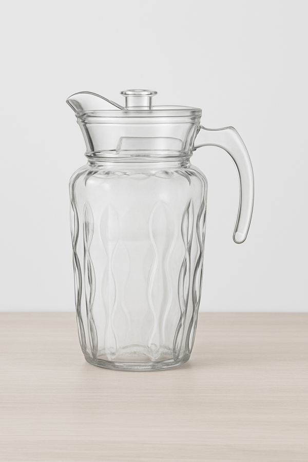 Jarra de vidrio templado de 1.8 litros, resistente y de diseño elegante. Ideal para agua, jugos, limonadas o bebidas frías. Incluye tapa con pico vertedor para servir fácil y sin derrames.