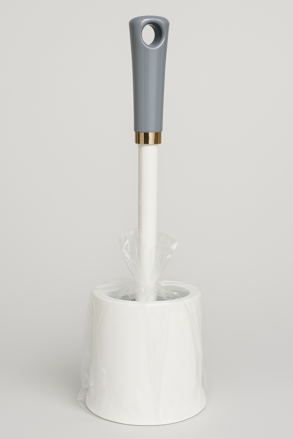 Escobilla sanitaria premium con base cerrada, diseño moderno en tono beige/marrón. Ideal para mantener el baño limpio y ordenado. Material resistente, fácil de lavar y con mango ergonómico.