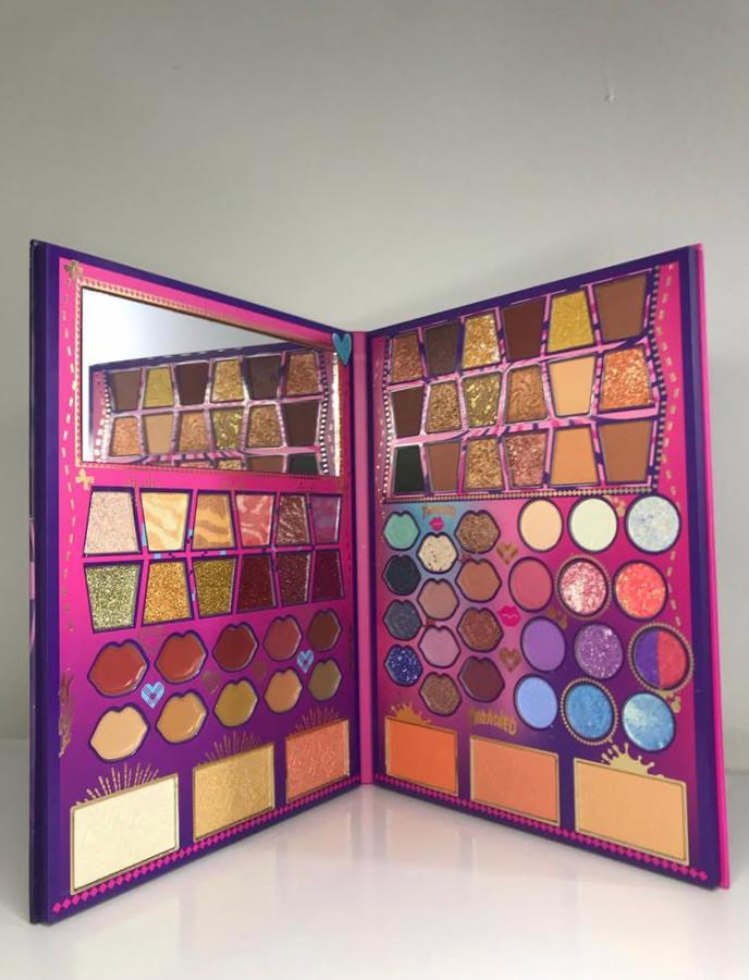 Esta paleta super completa y versátil cuenta con 55 sombras en mate, satinadas y glitter cremoso. Con 3 iluminadores y 3 rubores en polvo. Además contiene 10 productos en crema que pueden ser utilizados como labiales o rubores. La paleta incluye un espejo. Son productos altamente pigmentados y de alta resistencia.