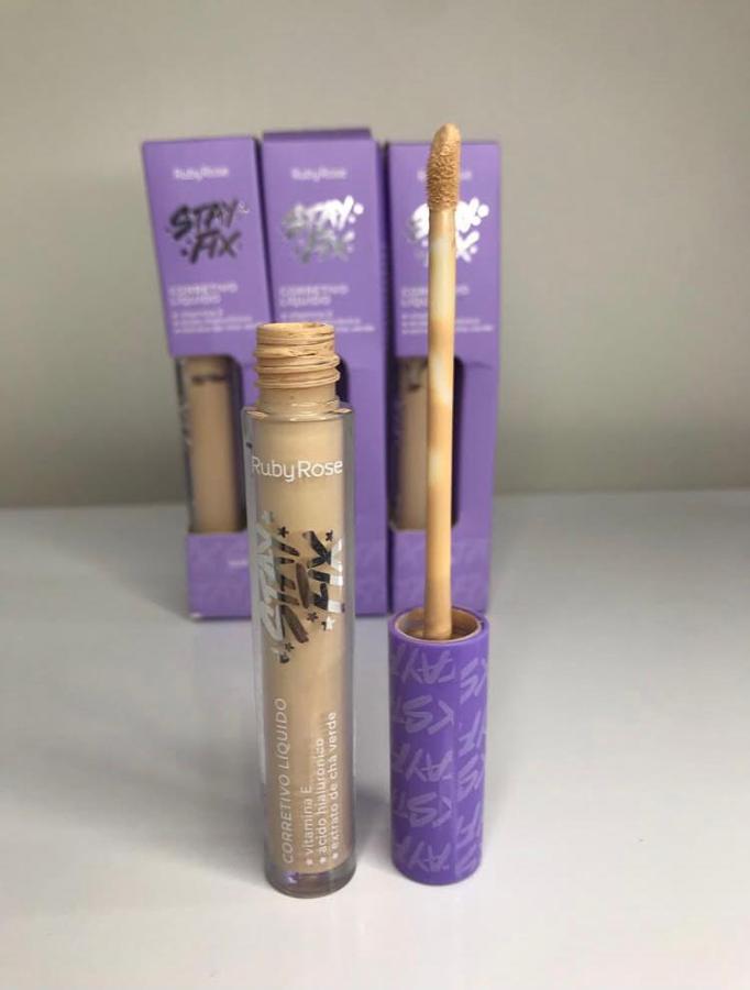 El corrector Stay Fix es de cobertura alta corrige y neutraliza las manchas y ojeras, su fórmula líquida y ligera contiene ácido hialurónico, Vitamina E, extracto de té verde y manteca de karite. Acabado mate, lo que lo hace ideal para pieles grasas.