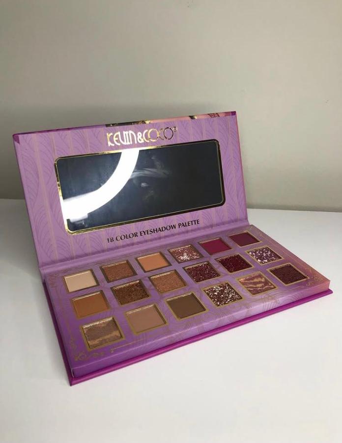 Paleta de 18 tonos 7 de ellos en tono mate, 7 tonos satinados y 4 glitter cremosos. Tiene una variedad de tonos marrones opacos y claros, tonalidades rosas cálidas y brillantes. Producto altamente pigmentado y de excelente fijación.