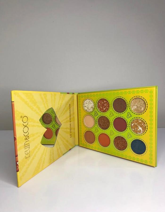 Esta paleta tiene 12 sombras, 4 mate, 4 satinadas y 4 sombras glitter cremosas, de alta pigmentación y fijación.